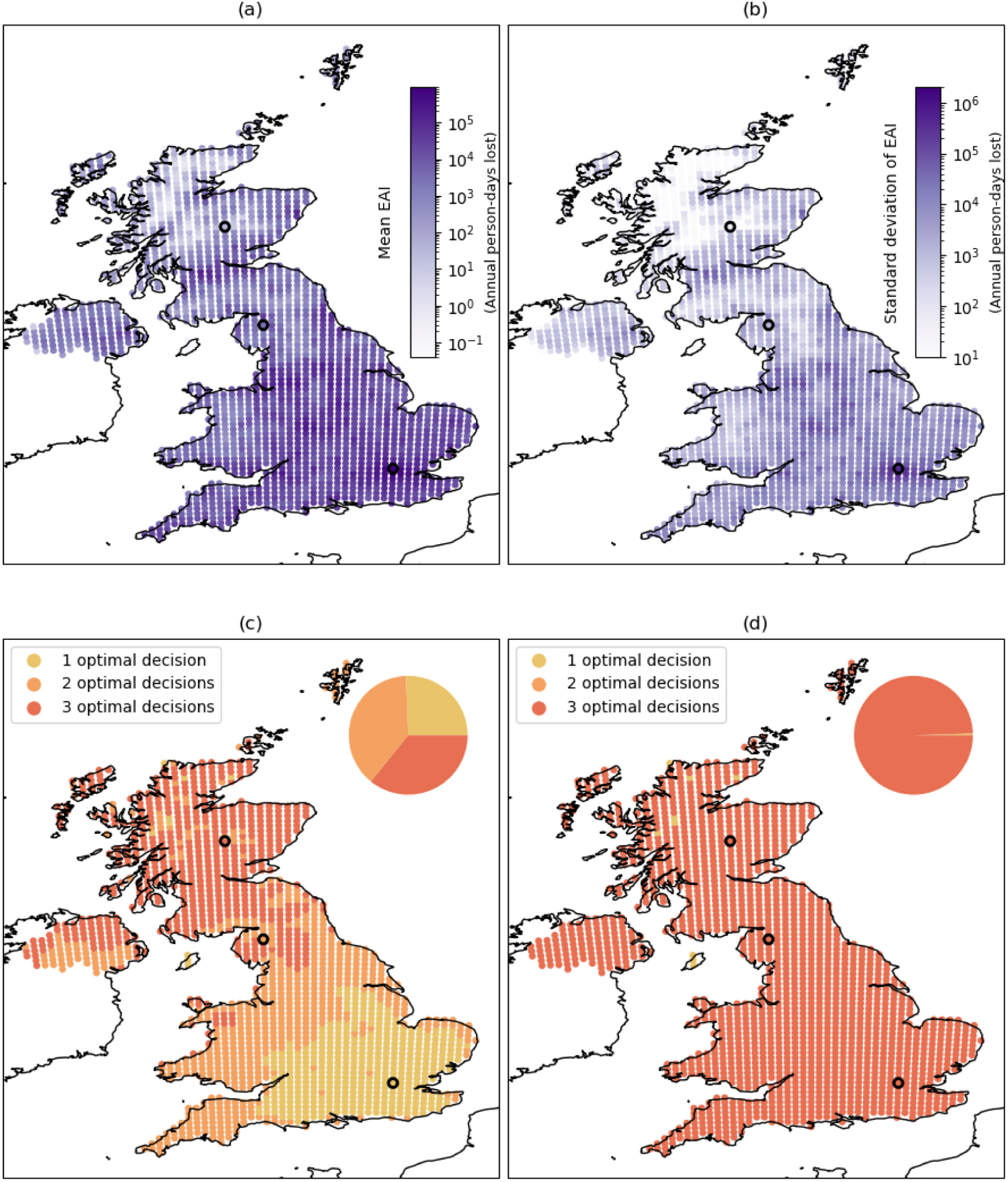 Demonstration of the importance of performing uncertainty and sensitivity analyses on climate adaptation decisions.